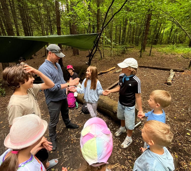 Stovyklų metu didžiąją dalį laiko leidžiame lauke, kūrename laužus, gaminamės maistą, mokomės iš gamtos stebūklų, maudomės, aktyviai leidžiame laiką. Taip pat tikime laisvo žaidimo nauda - leidžiame skleistis vaikų vaizduotei laisvo laiko metu. Mums blogo oro nebūna!